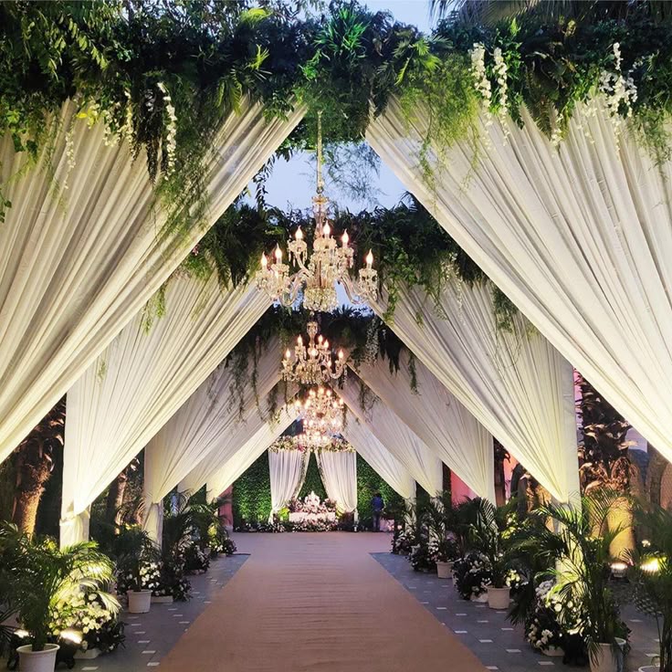 Luxurious mandap and stage setups designed with elegant drapes, flowers and lighting to create a stunning centerpiece for your wedding ceremony.